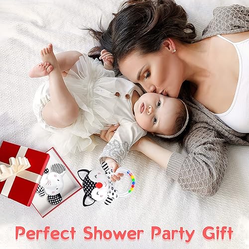 [ Black and White Baby Toys 0-3 Months] The visual development of a newborn baby needs a certain period of time. When the baby is 0-12 months old, the black and white series of baby rattle is the best choice for the baby's vision development. Adorable newborn soft plush stuffed newborn toys with animal design can inspire baby's visual development and cultivating baby's color perception, encourage baby to touch and explore