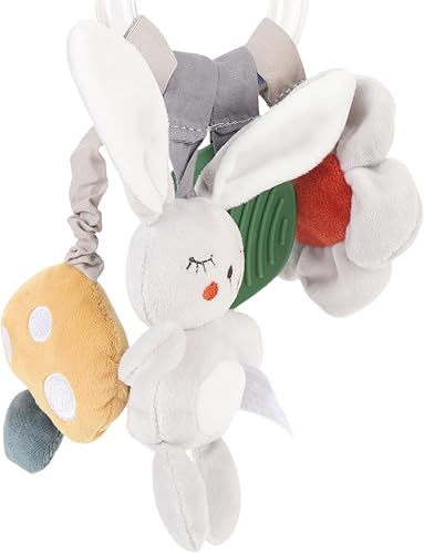 [Hassle- Entertainment] Equipped with a hanging loop for easy attachment to cribs, strollers, or cars, this cute bunny hanging toy is for on-the-go fun.