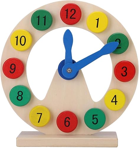 clock children wooden- WOODEN CLOCK: The colorful clock toy is made of sustainable wood, is non- and has smooth edges. Suitable for 3 years old and plus.